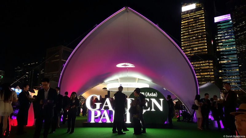 S1000 Overdækningen har en højde på fem meter ved spidserne, en meter mere end den mindre Opera House S500 Overdæknig, der giver en stor rummelig fornemmelse, og den vide dug gør det desuden muligt, at lave farvefyldte lysdesigns og projiceringer så du kan skabe god atmosfære og rum til dit event.